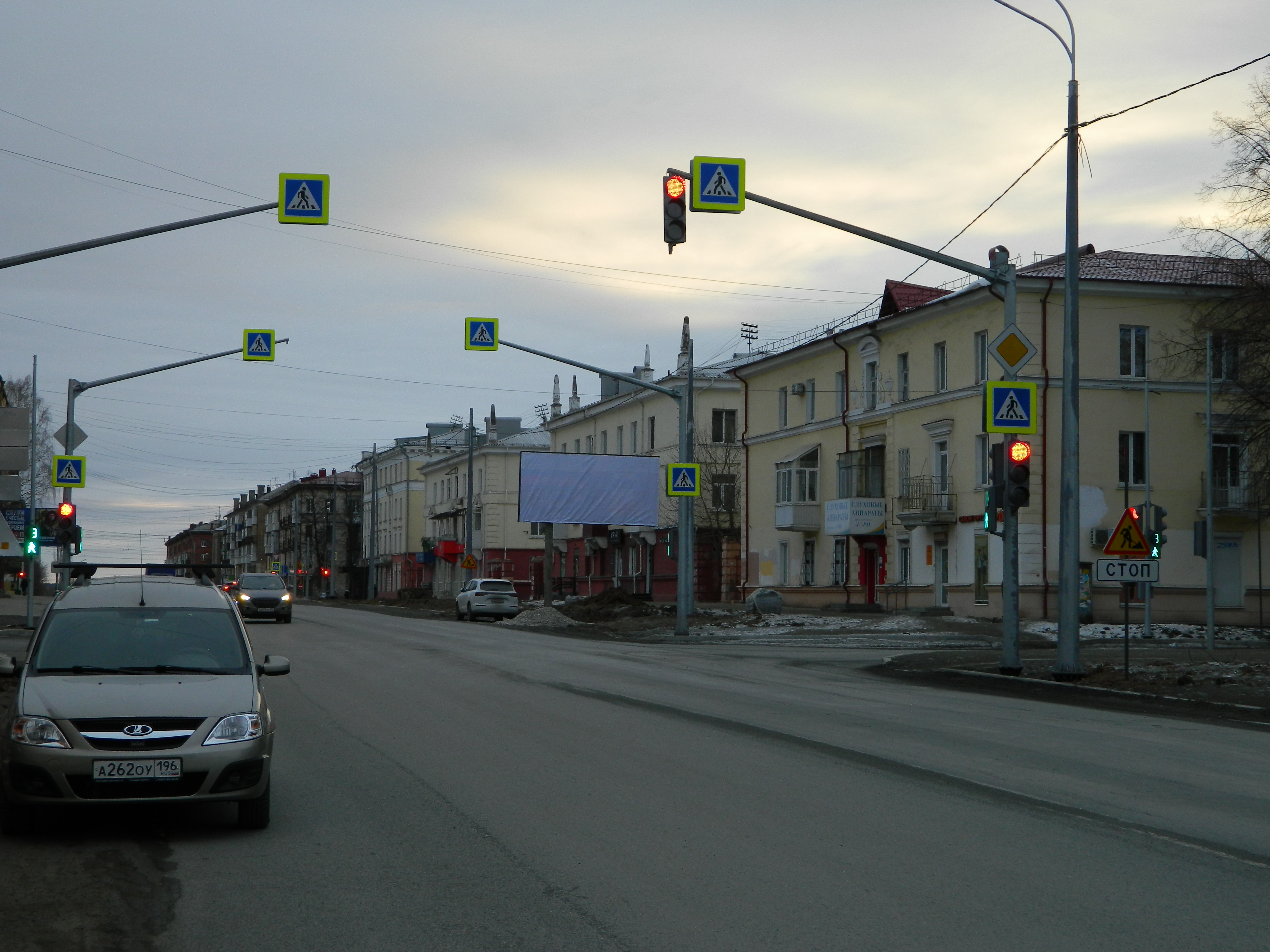Щит расположен на перекрестке двух улиц в центре деловой активности города. Хорошо просматривается во время ожидания сигнала светофора. Направление движения транспорта на вокзал, в центр города, к ТЦ "Кардинал". Рядом расположены магазин "Красное и белое", ортопедический салон, стоматологический центр. Высокий автомобильный и пешеходный трафик.