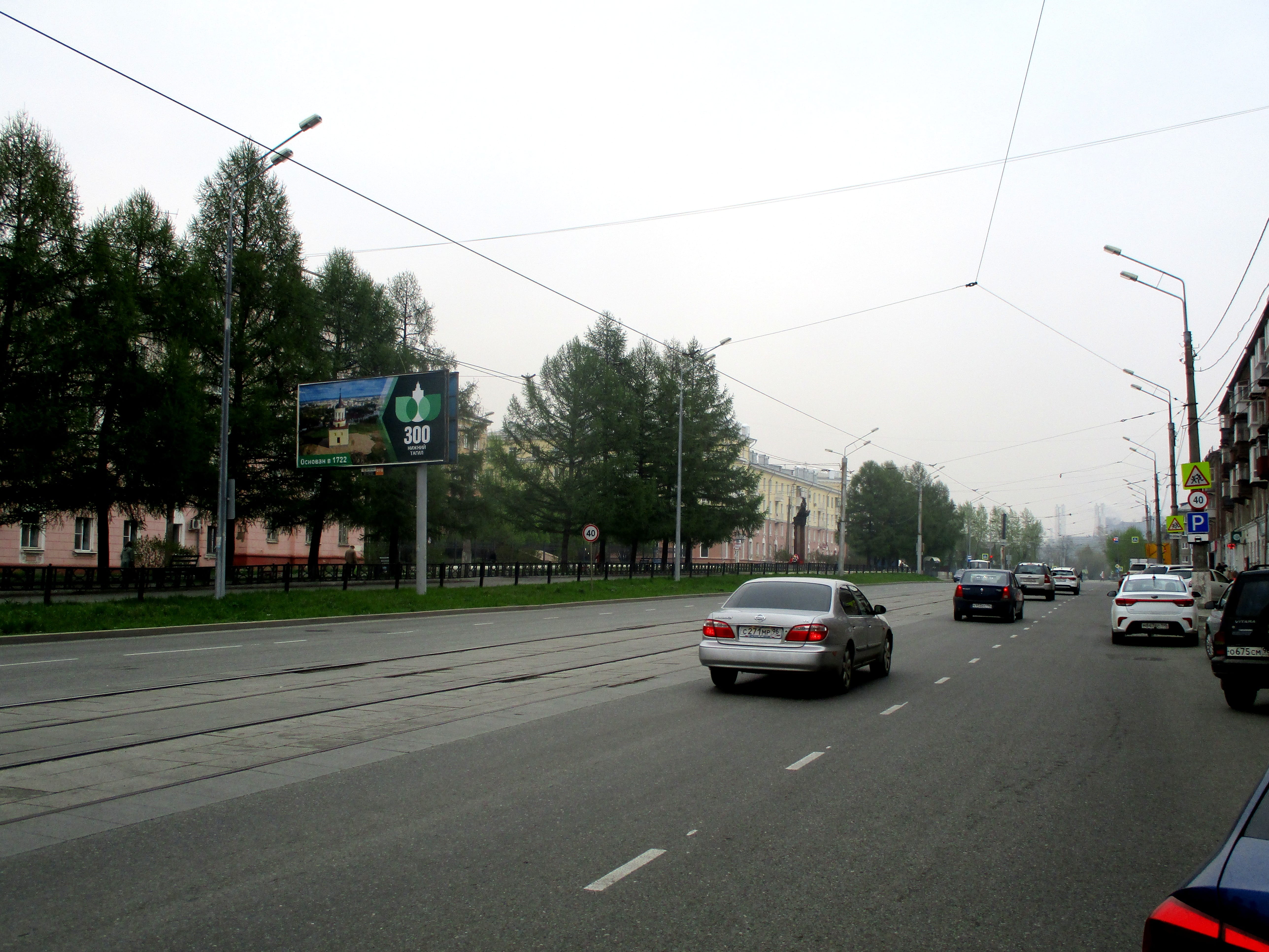 Щит расположен по ходу движения транспорта в сторону Тагилстроя, вокзала, в центр города. Рядом находится пиццерия парковка машин, большое количество магазинов одежды и обуви, "Товары для дома", школа. В течение дня большой поток людей и машин.