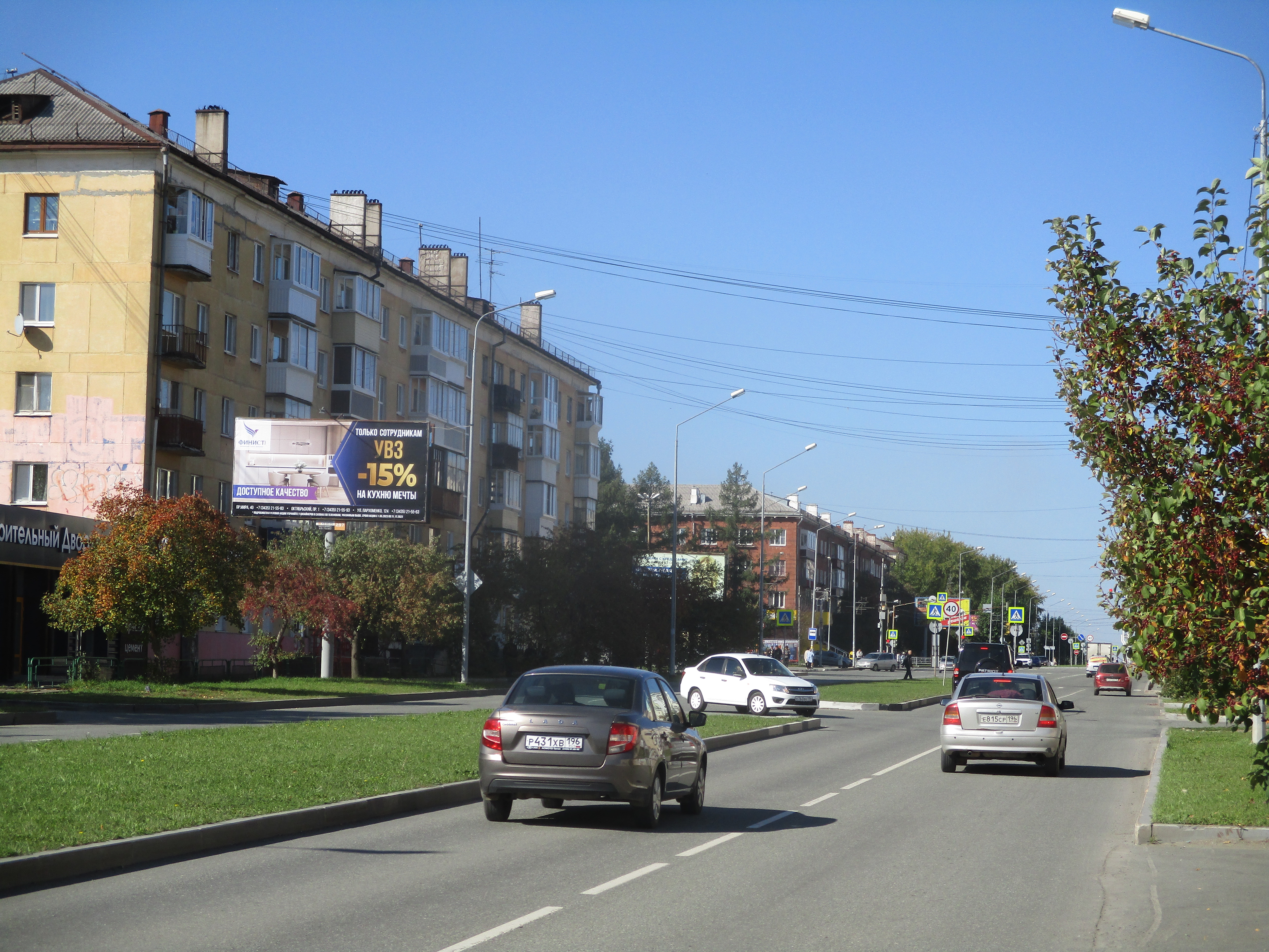 Щит расположен на главном проспекте Вагонки, на парковке машин. Рядом находятся магазин Красное & Белое, "Строительный двор", магазин "Лимпомпо", через доргу расположены магазины одежды, зоомагазин, ювелирный салон, остановка маршрутного транспорта. Движение транспорта в сторону проходной УВЗ и в центр города.