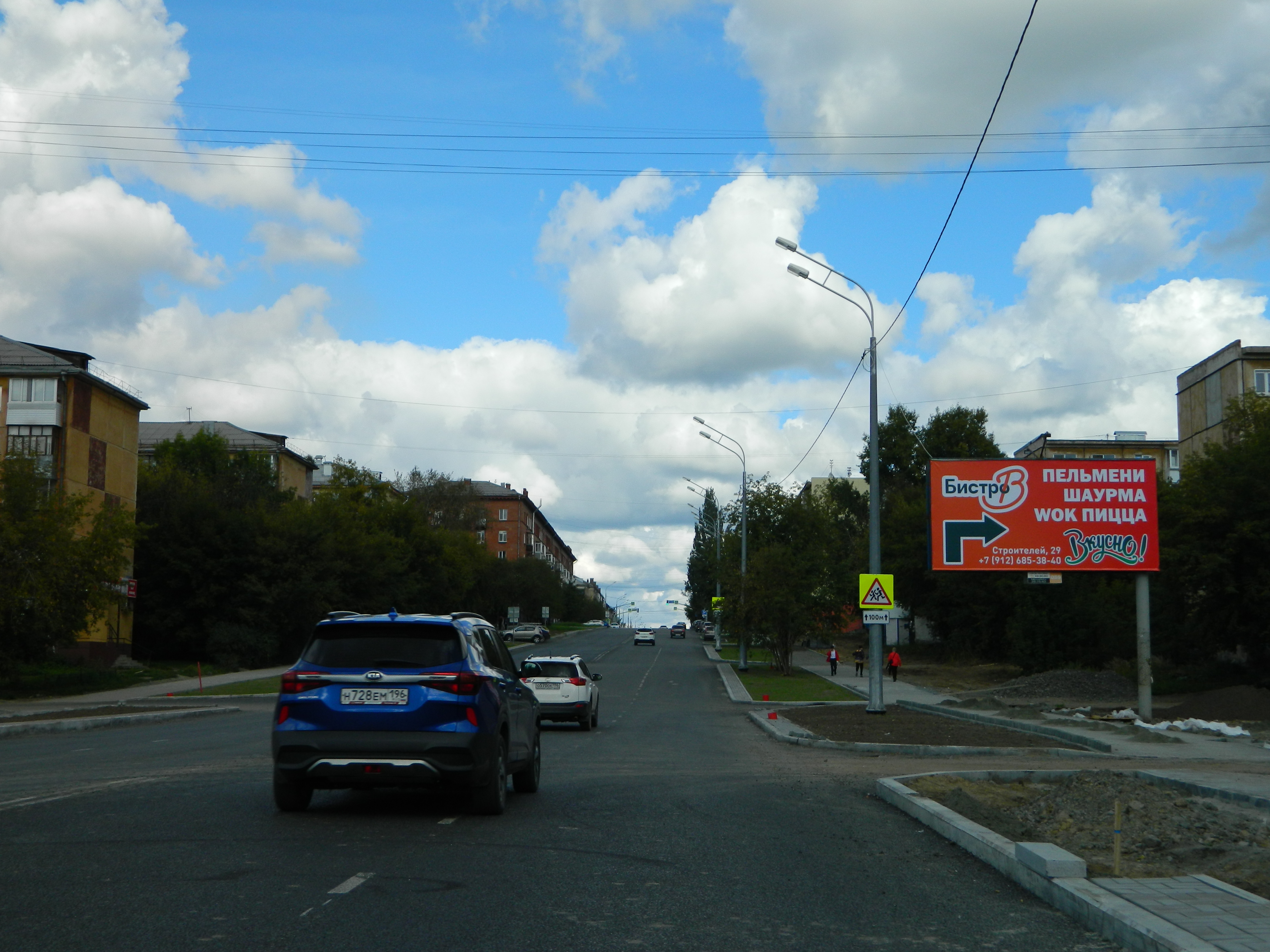 Щит расположен рядом с магазином "Магнит", по направлению в центр города. Хорошо просматривается во время ожидания светофора. Рядом расположен отель Demidov Plaza, магазин запчастей для иномарок, школа. Высокий автомобильный и пешеходный трафик.